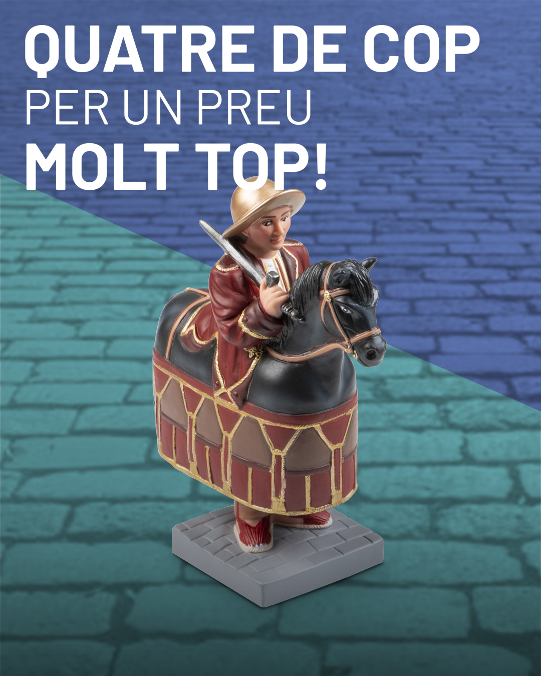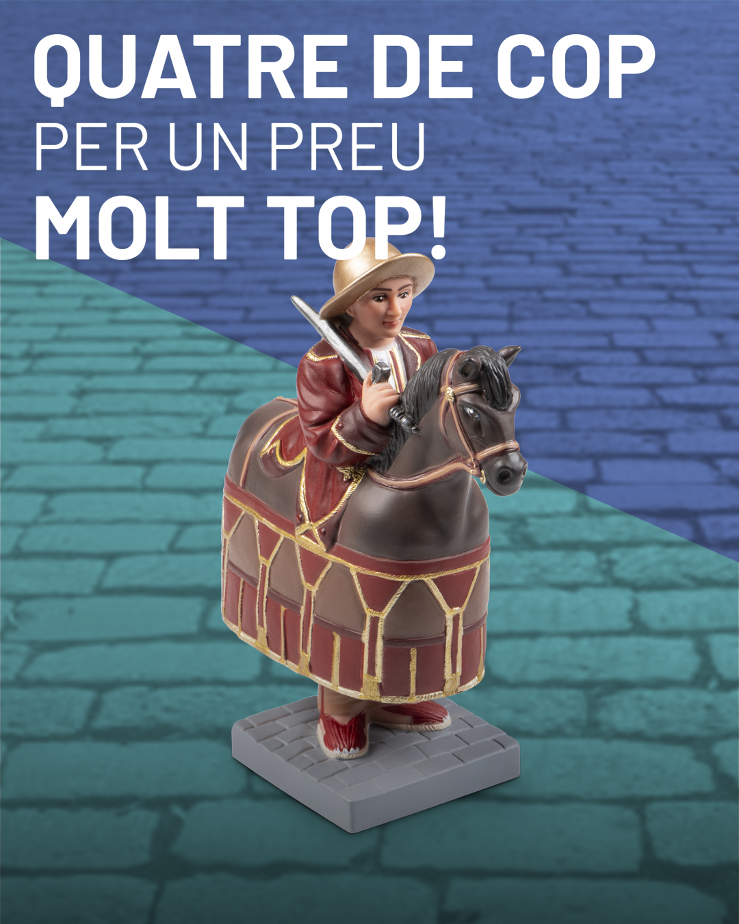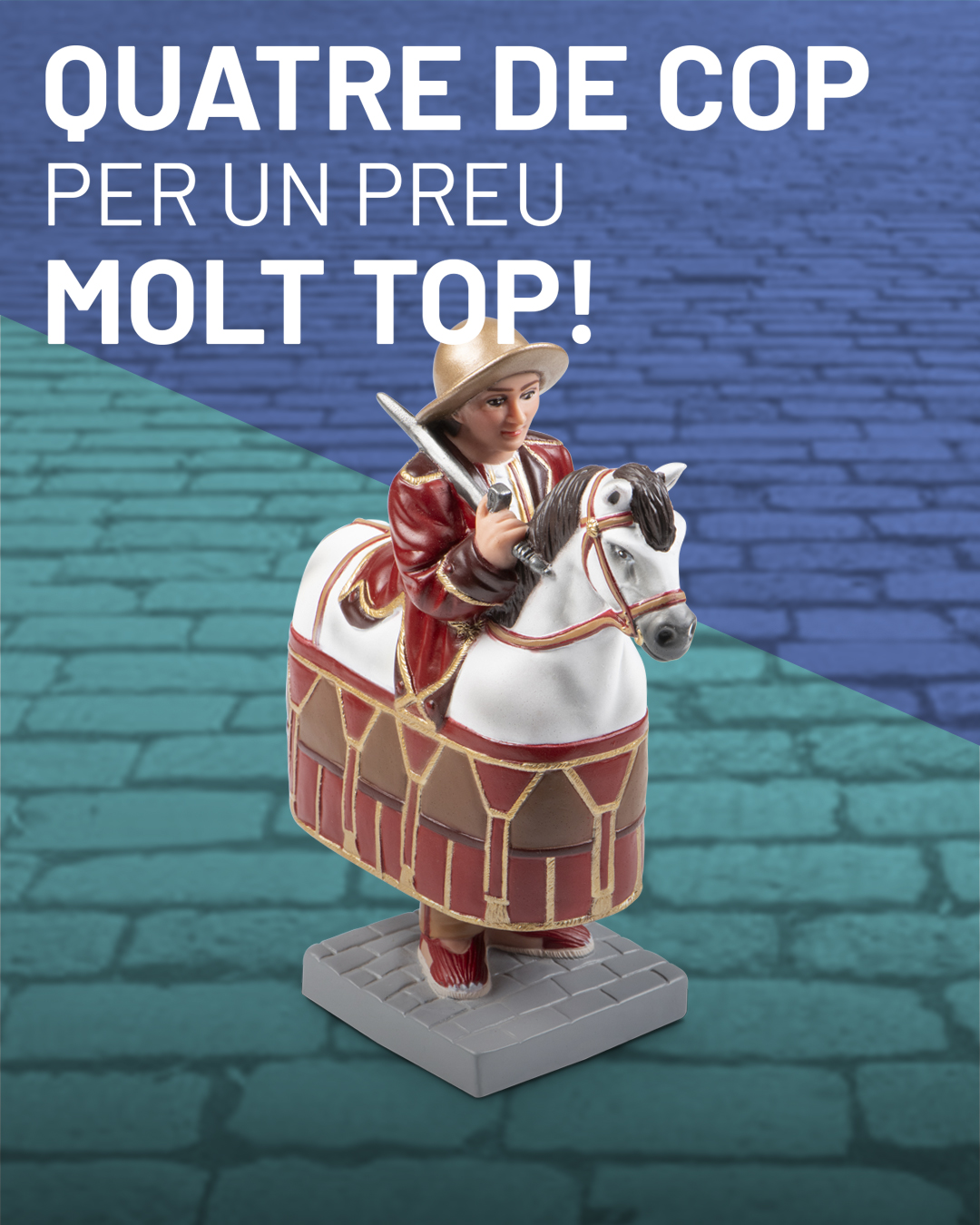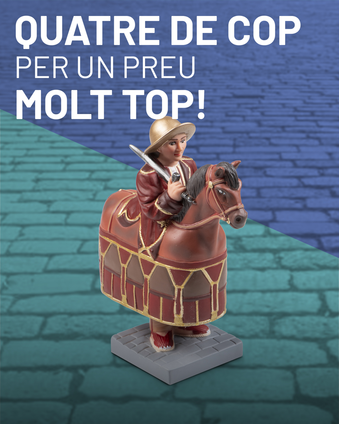 Les quatre figures de goma dels Cavallets Cristians de Reus, un cavall de cada color, agrupades en un pack i a un preu especial!